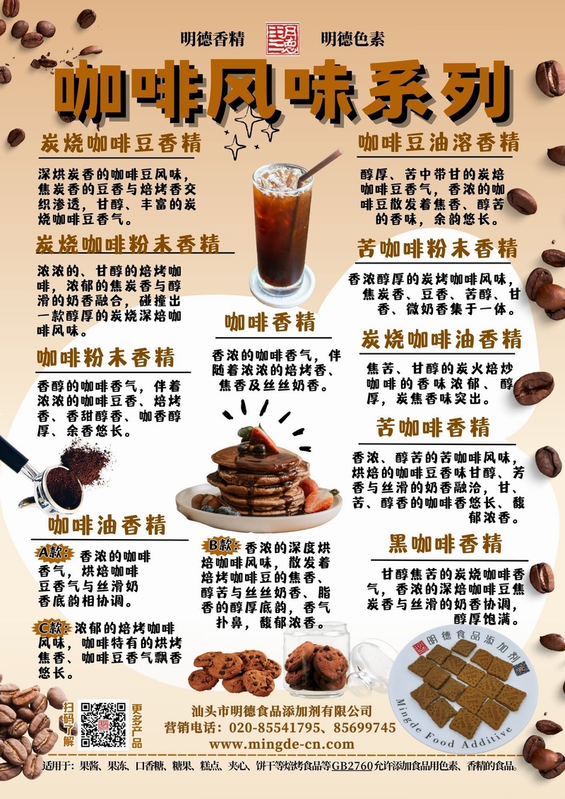 明德咖啡風(fēng)味系列香精 | 多層咖啡醇香 覆蓋豐富應(yīng)用場景汕頭市明德食品添加劑有限公司推出的咖啡風(fēng)味系列香精,涵蓋多種焙炒、奶香、焦糖及深度烘焙調(diào)性,滿足飲品、烘焙、糖果、乳制品等多領(lǐng)域的咖啡風(fēng)味需求,為B端客戶提供穩(wěn)定、真實(shí)的咖啡香氣解決方案。