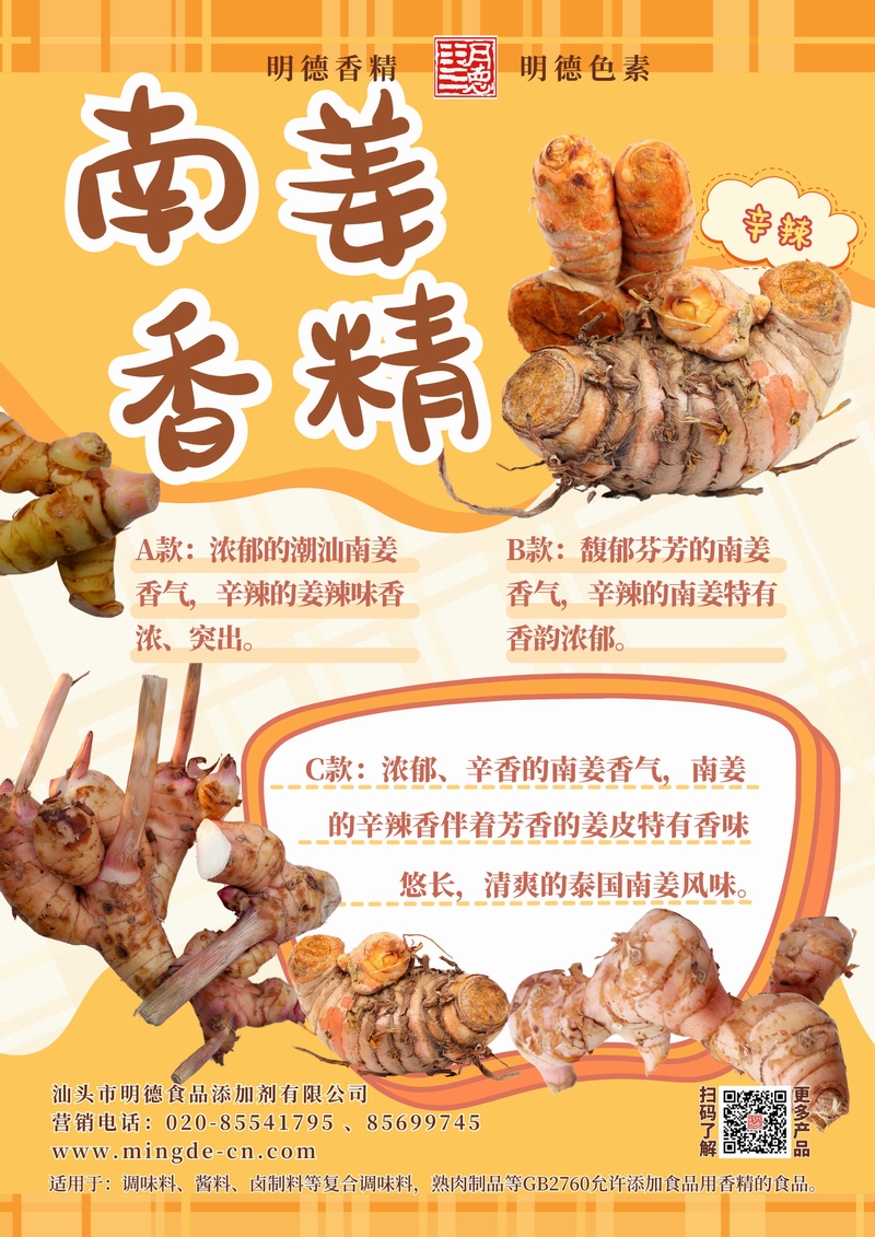 明德南姜香精 辛香鮮明 覆蓋鹵醬腌制與東南亞風(fēng)味汕頭市明德食品添加劑有限公司推出的南姜主題香精,覆蓋多種品類,風(fēng)味真實(shí)、留香穩(wěn)定,適用于醬料、腌制料、調(diào)理食品、肉制品、鹵制品、熟肉制品、復(fù)合調(diào)味等B端應(yīng)用。